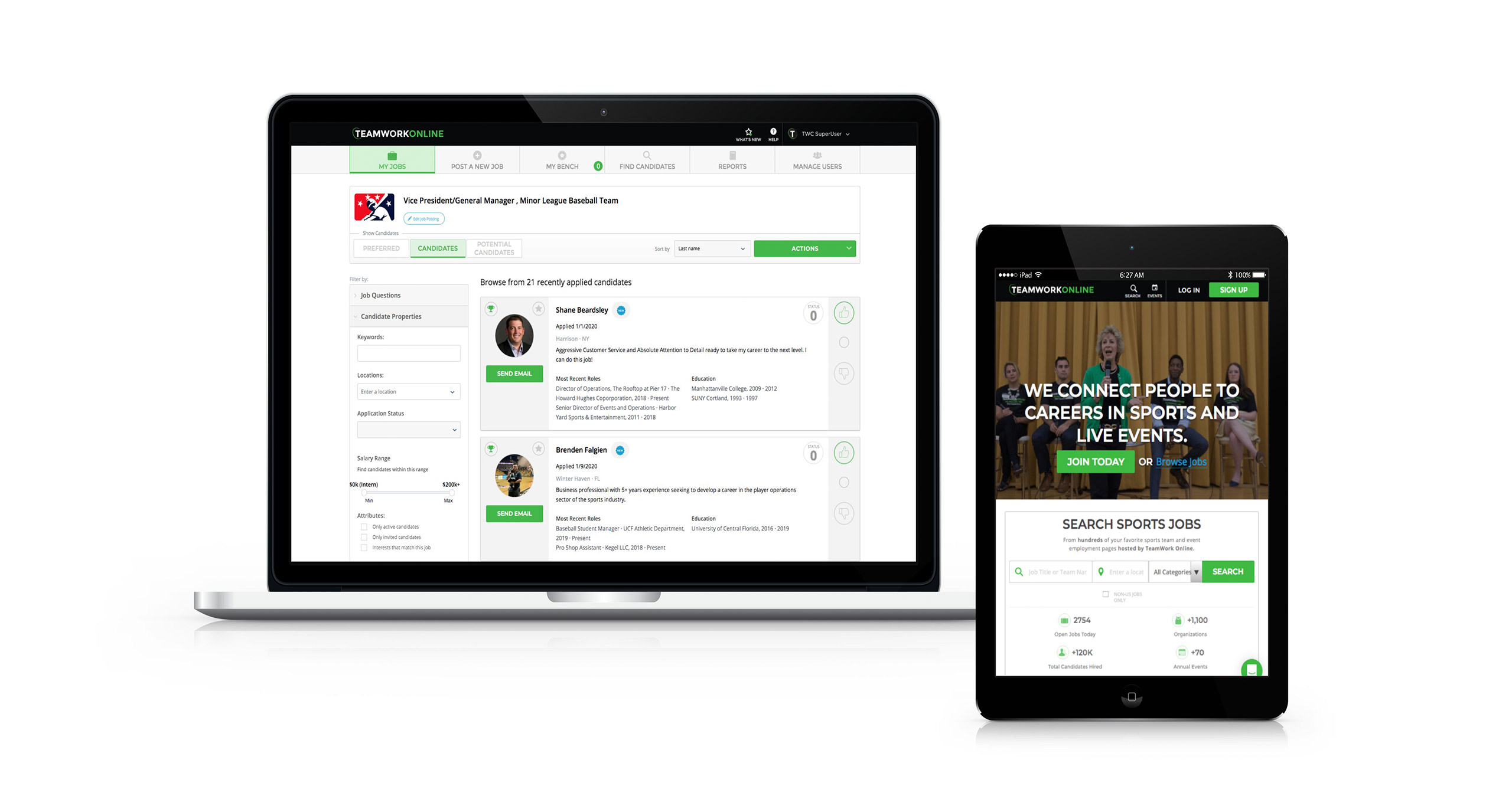 TeamWork provides an applicant management system to post jobs, review, change status, turn-off candidates, and manage the complete recruiting process within the system.